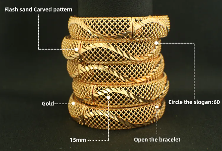 Romooz New Dubai Luxury Jewelery Bangle Bracelet With Ring Set Jewelry Open Cuff 18K Gold Plated Bangle And Ring Set