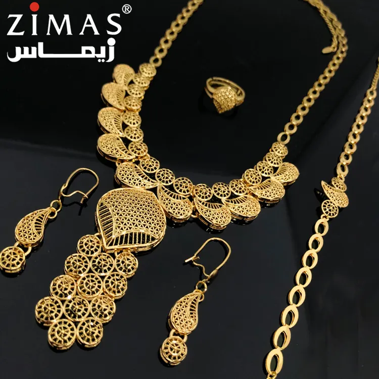 Romooz New Dubai Luxury Jewelery Bangle Bracelet With Ring Set Jewelry Open Cuff 18K Gold Plated Bangle And Ring Set