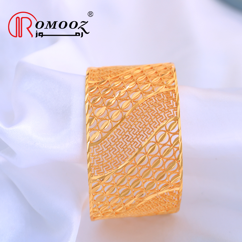 Romooz New Dubai Luxury Jewelery Bangle Bracelet With Ring Set Jewelry Open Cuff 18K Gold Plated Bangle And Ring Set